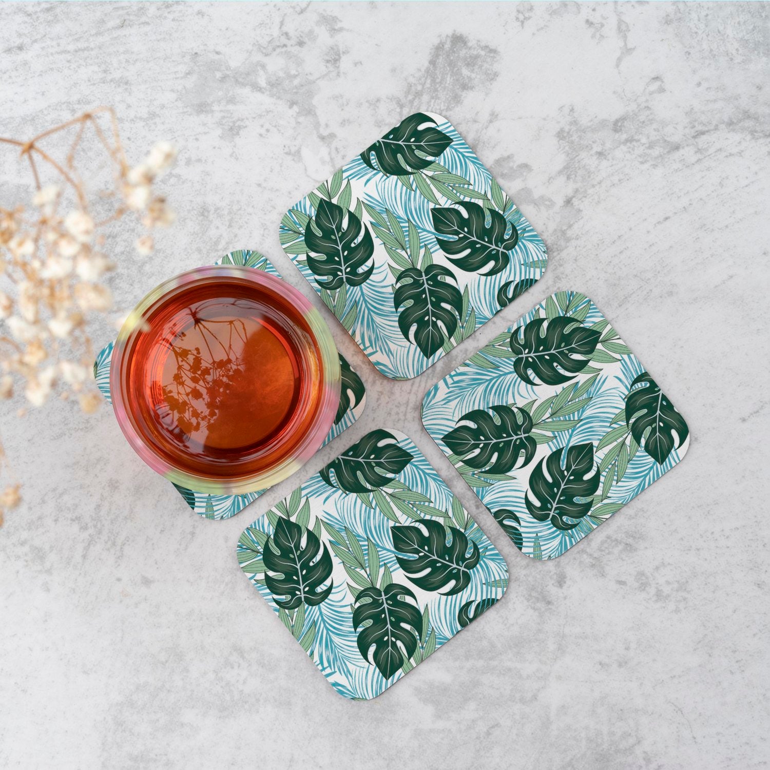 Tropical Pattern With Bright Plants And Flowers Coasters
