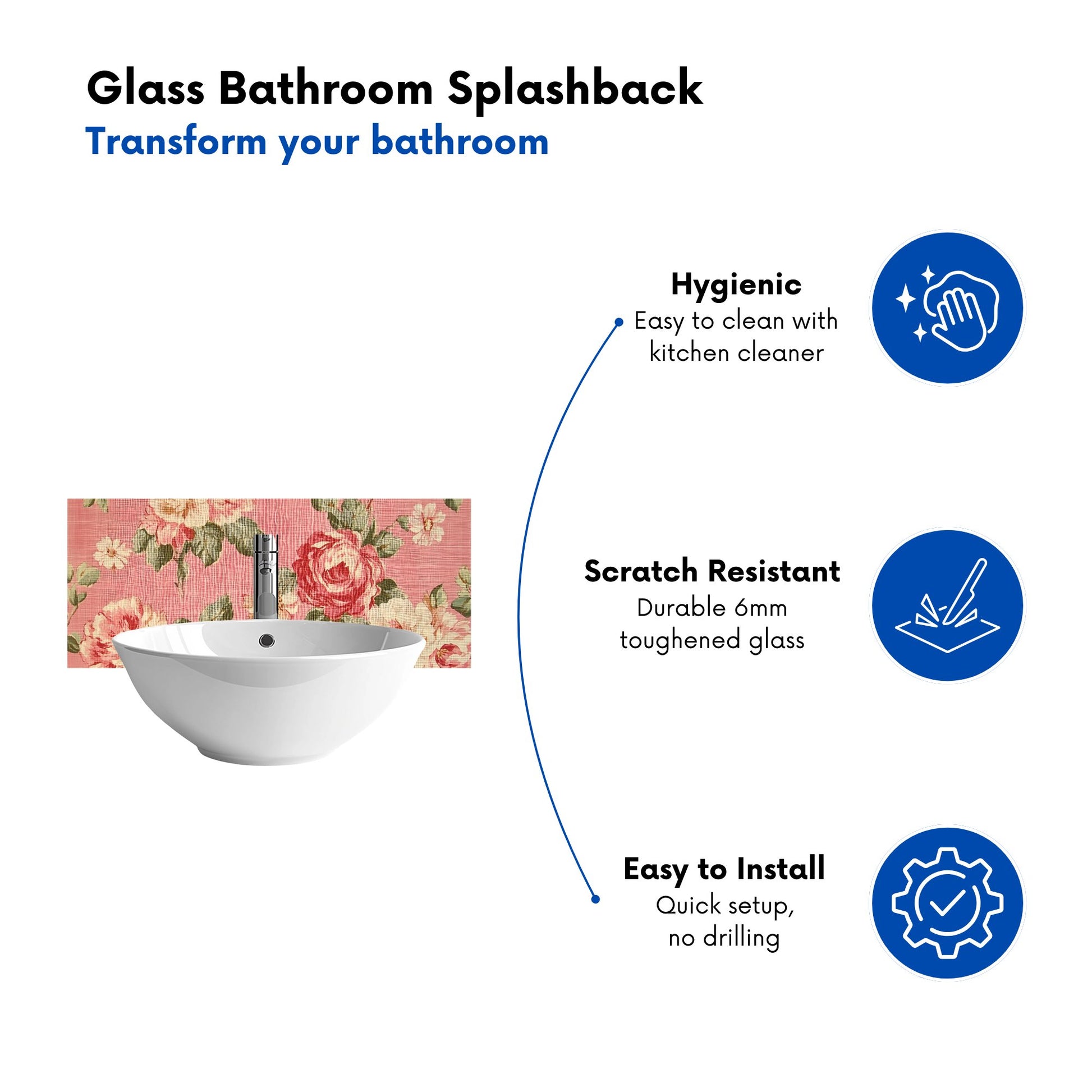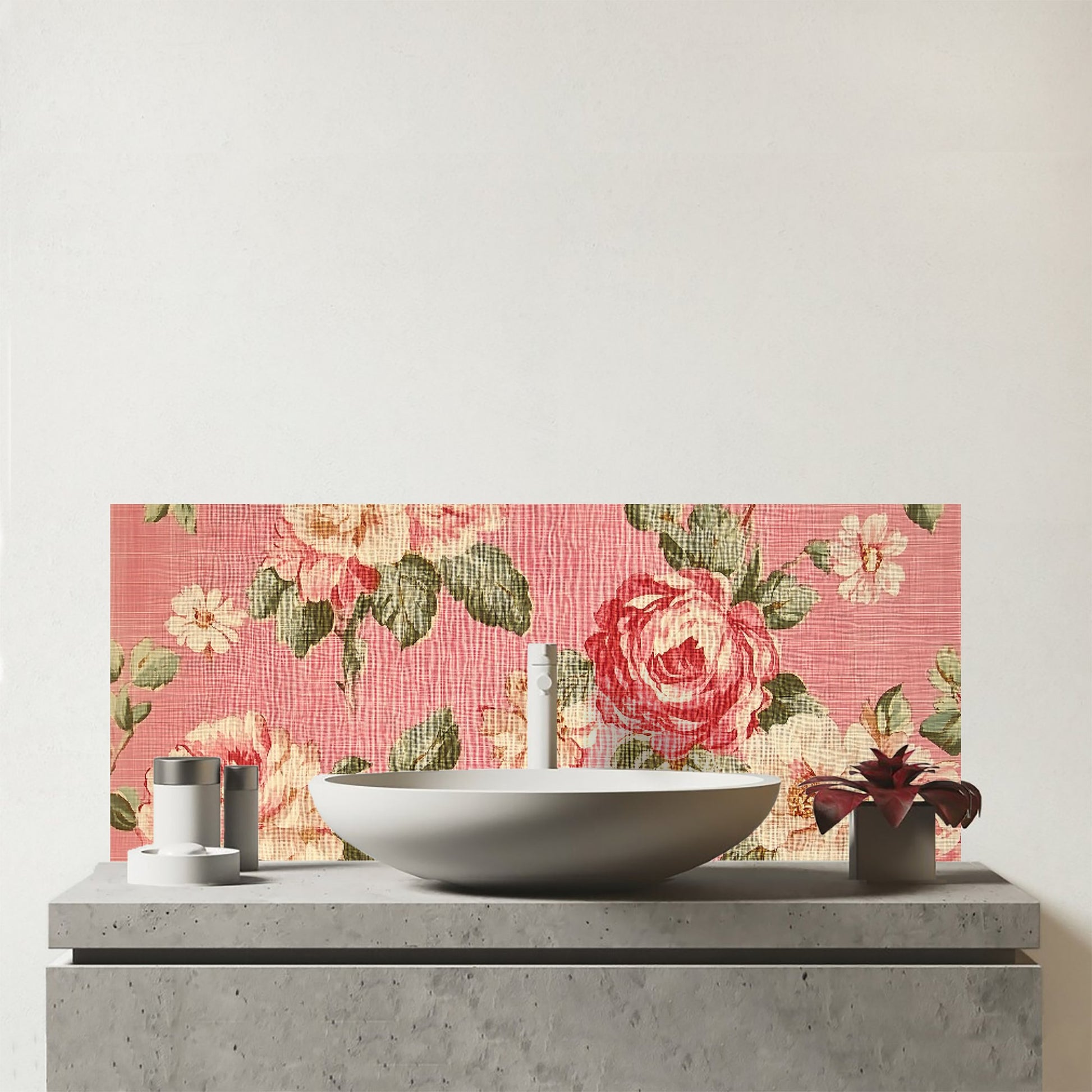 Vintage Pink Textured Roses Glass Bathroom Splashback