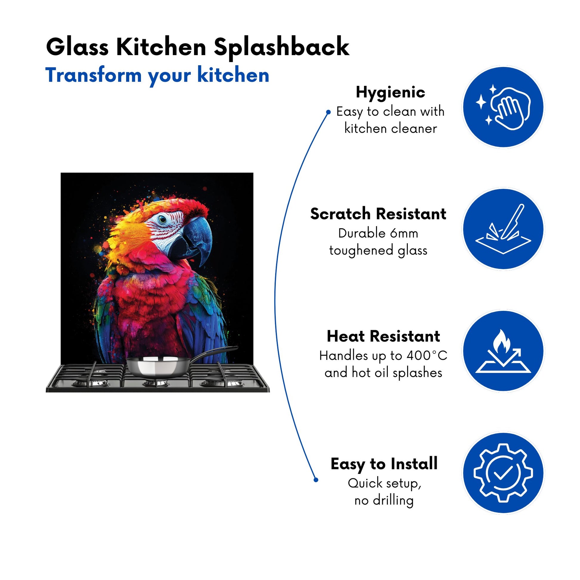 Durable and easy to clean, it's perfect for the kitchen. Whether renovating or updating your home’s look, our Premium 6mm Glass Kitchen Splashback is a stylish choice that makes a lasting impression. Upgrade your kitchen décor today for the perfect mix of beauty and practicality.