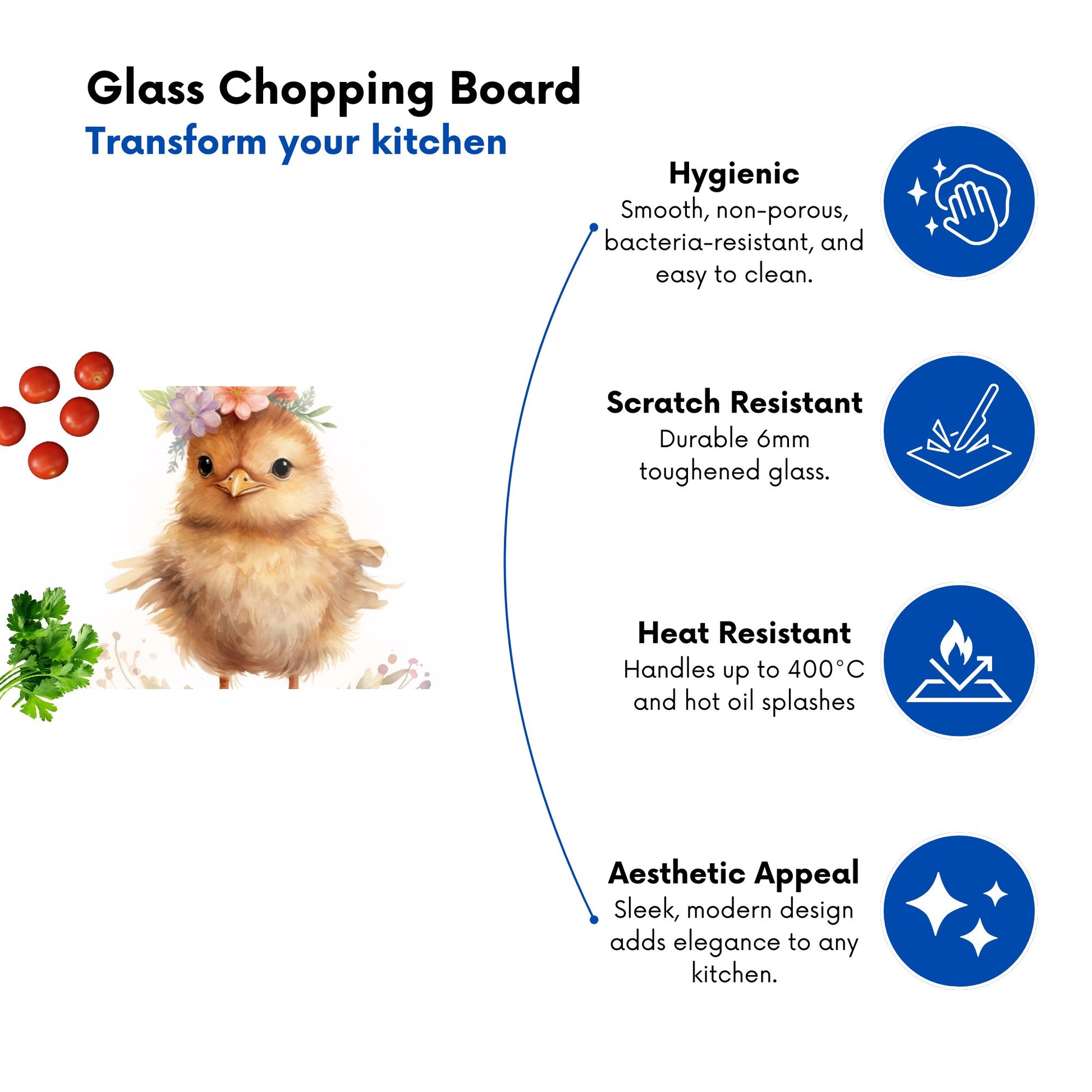 Add a touch of elegance and practicality to your kitchen with this premium glass chopping board from Warren Reed. Made from toughened glass, it’s designed to handle daily use while showcasing stunning artistic designs. Whether you use it as a cutting board, serving platter, or decorative piece, it’s the perfect blend of style and function.