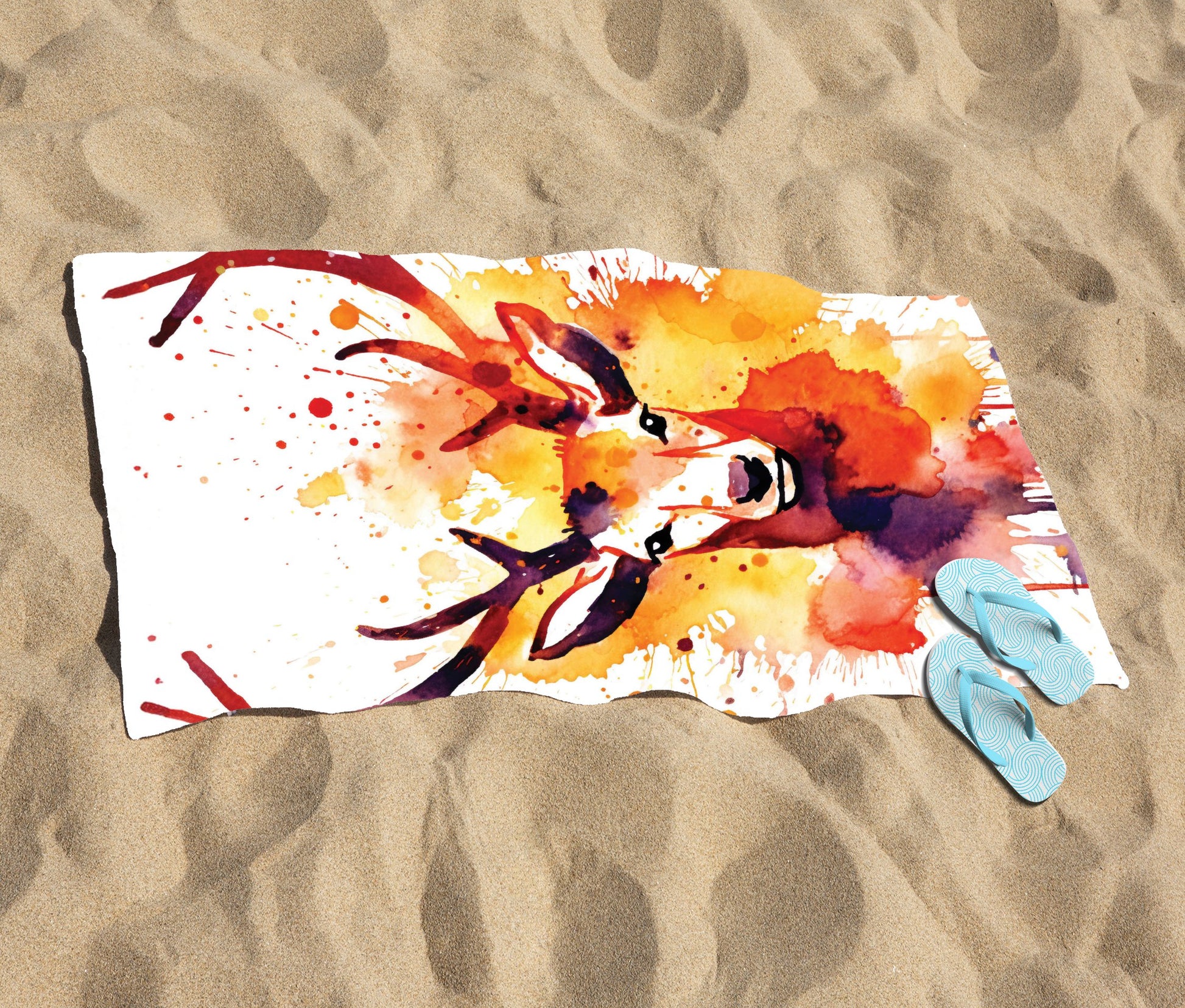 Watercolour Stag Face Beach Towel