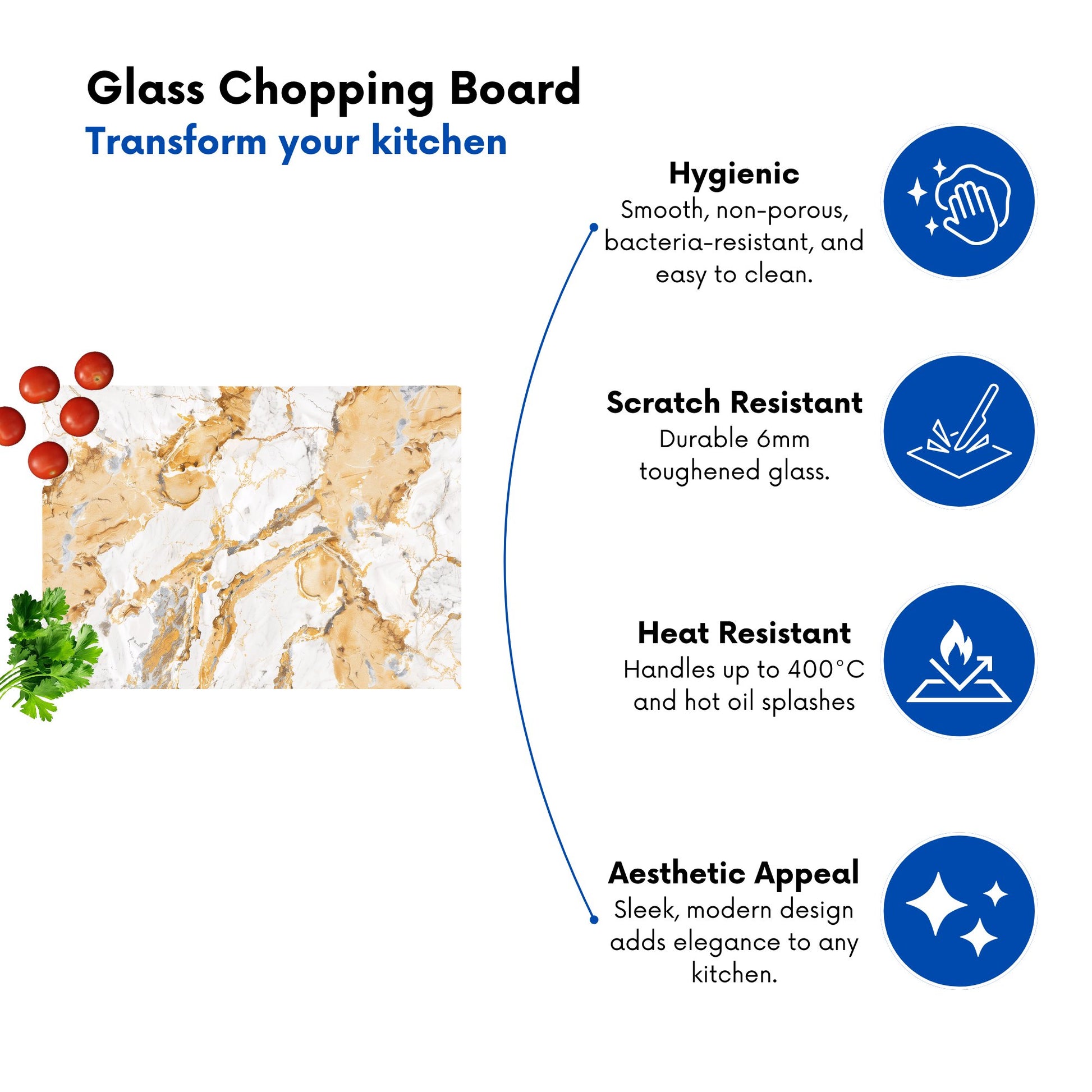 Add a touch of elegance and practicality to your kitchen with this premium glass chopping board from Warren Reed. Made from toughened glass, it’s designed to handle daily use while showcasing stunning artistic designs. Whether you use it as a cutting board, serving platter, or decorative piece, it’s the perfect blend of style and function.