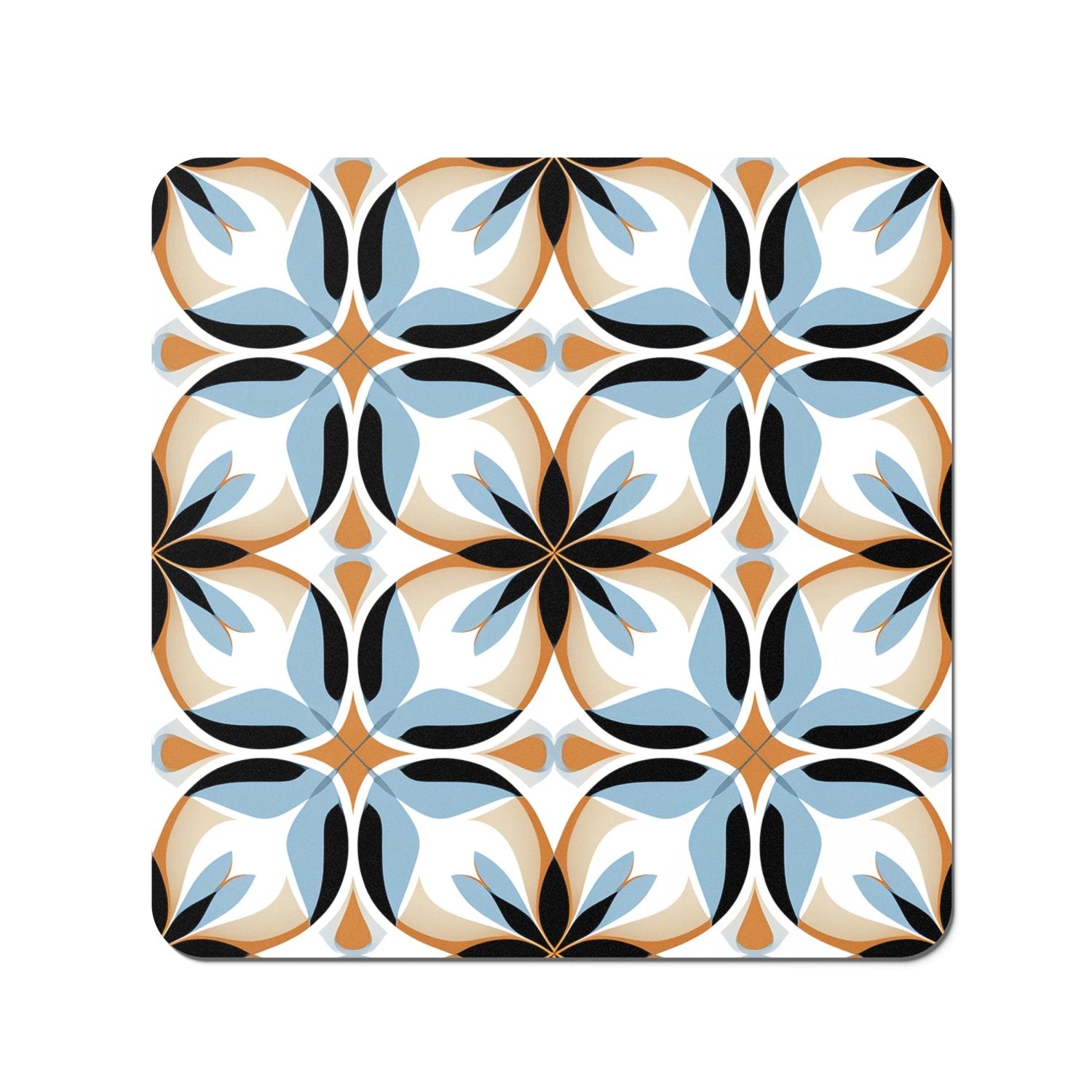 White Brown and Blue Geometric Pattern Coasters