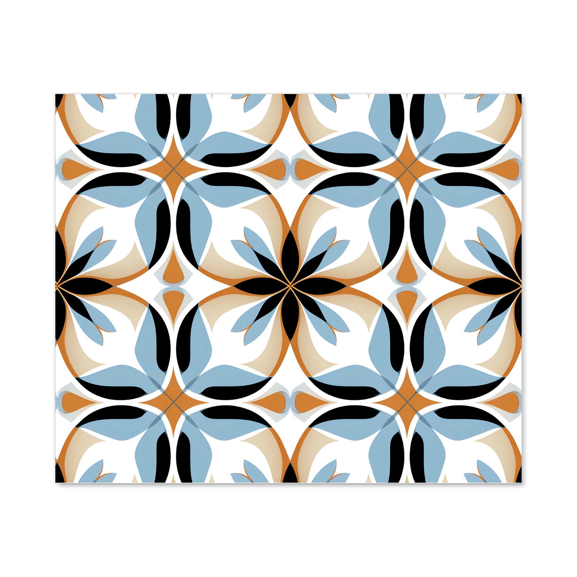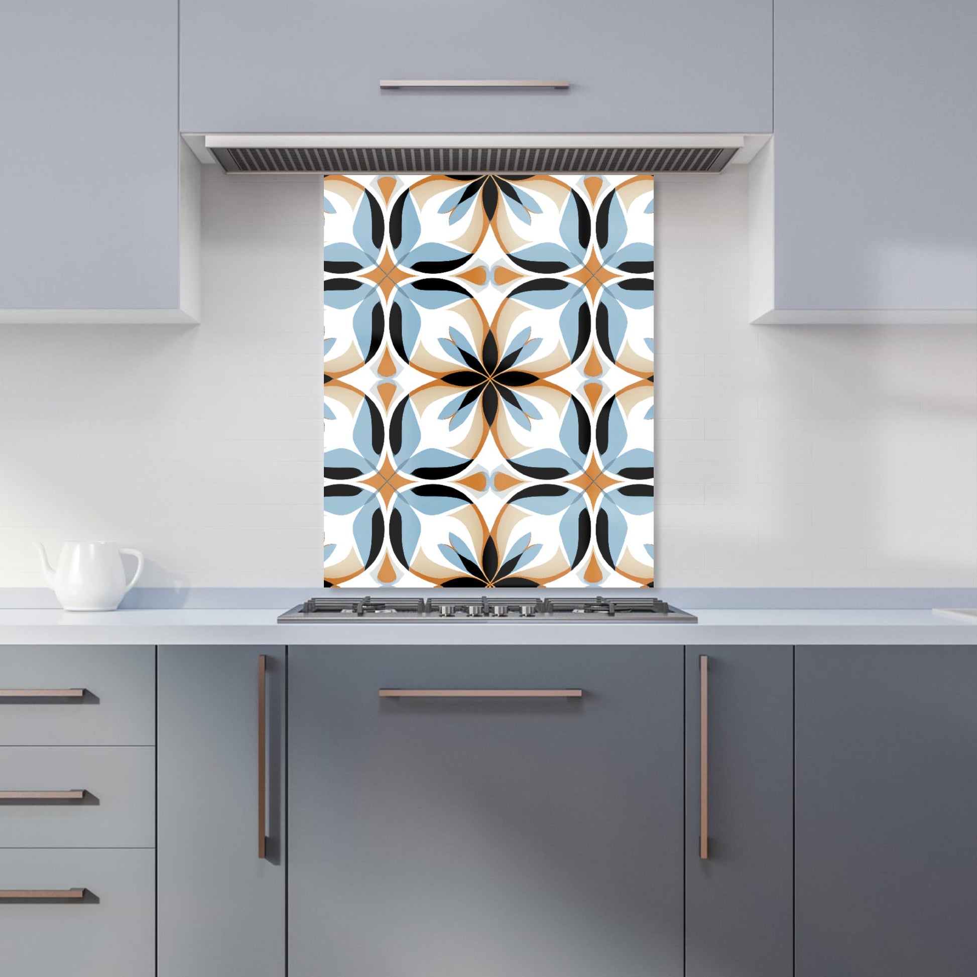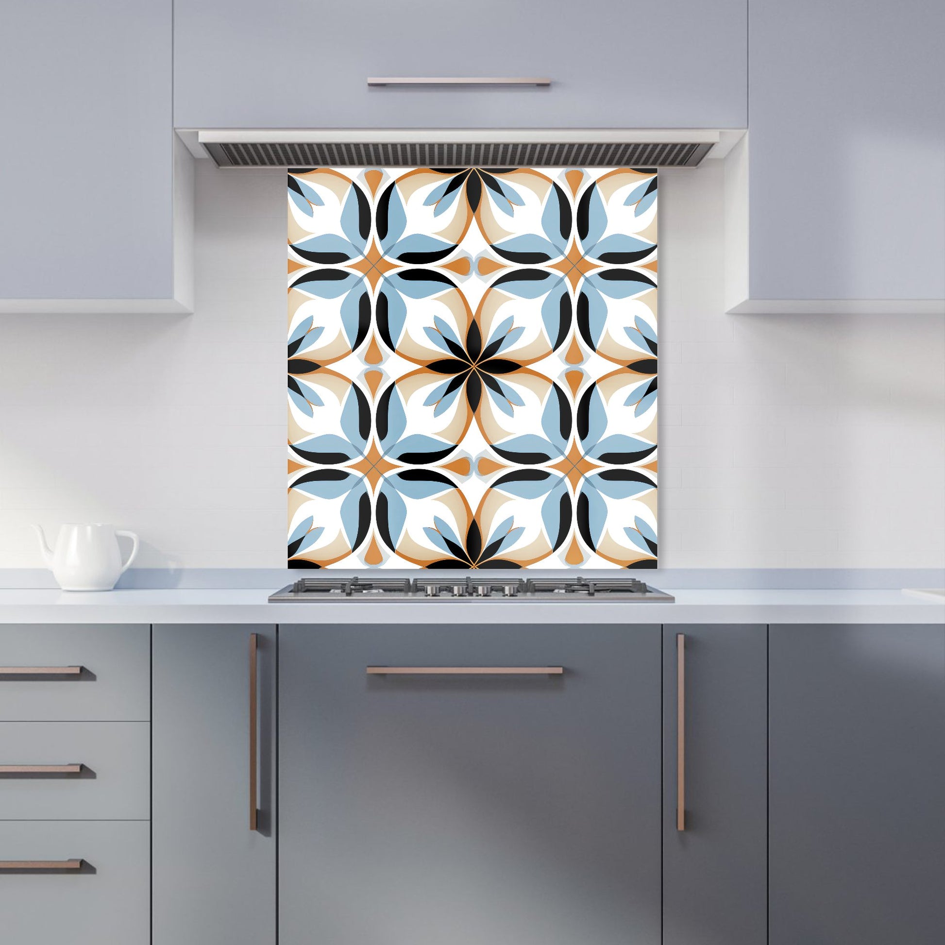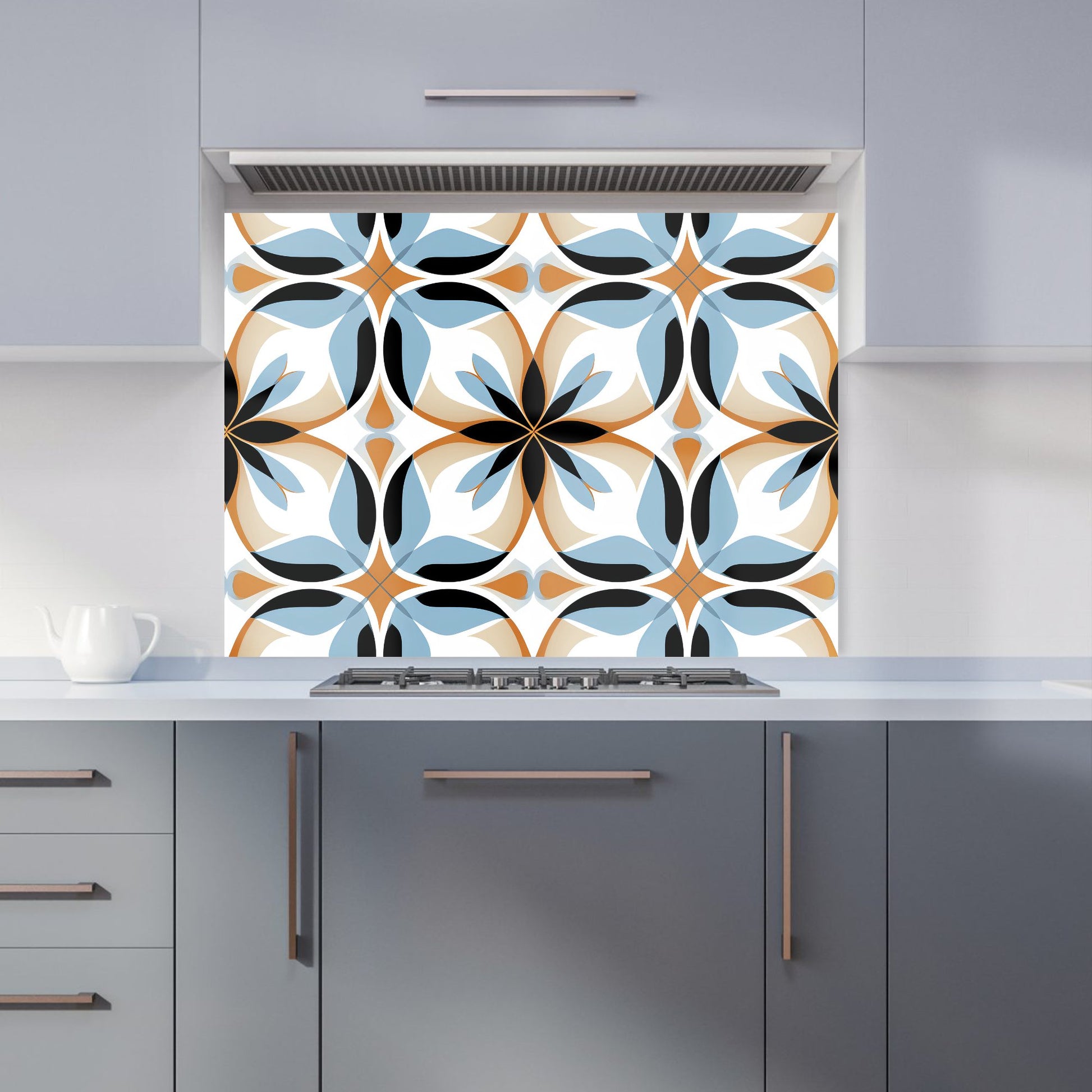 White Brown and Blue Geometric Pattern Kitchen Splashback