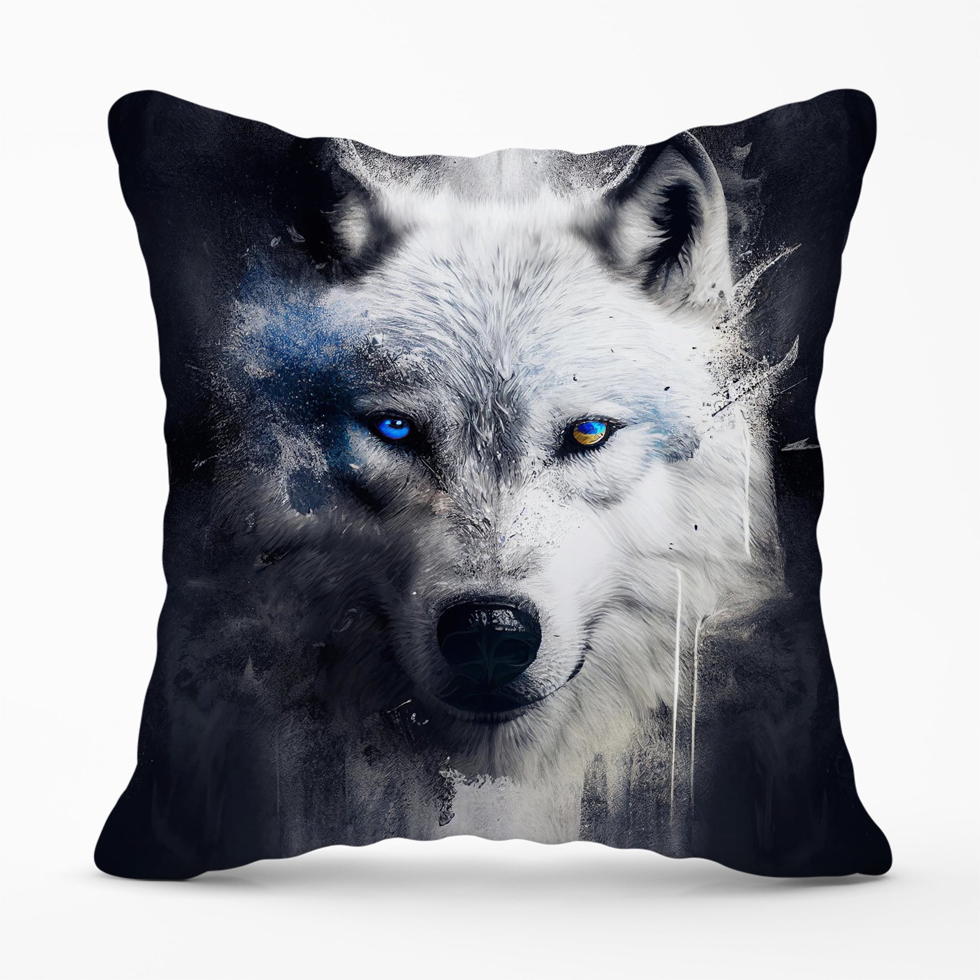 White Wolf Face Splashart Dark Backgrouns Cushions