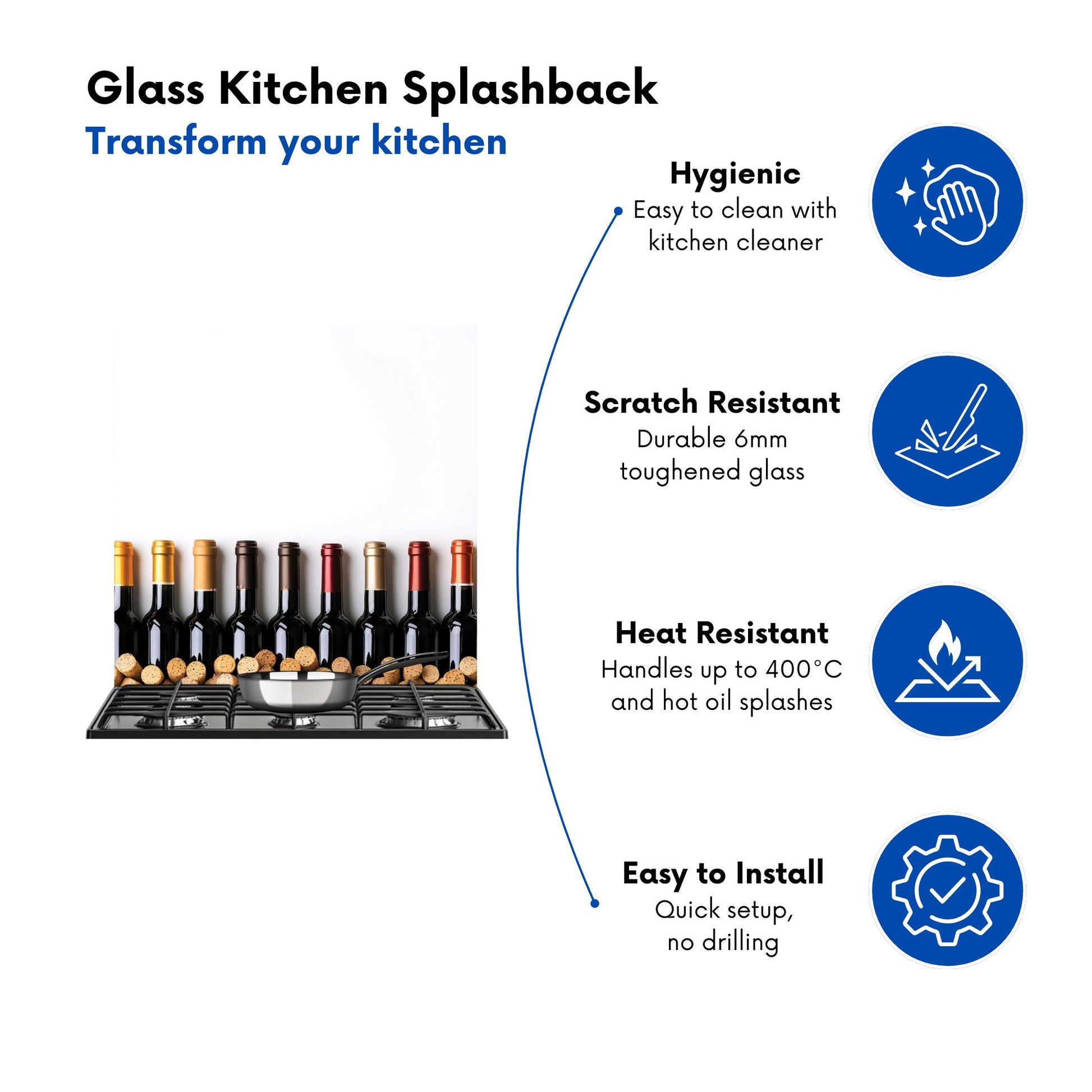 Enhance your kitchen with our stunning glass splashback. This high-quality addition boosts both functionality and style. The high-resolution print on toughened glass creates a striking focal point.