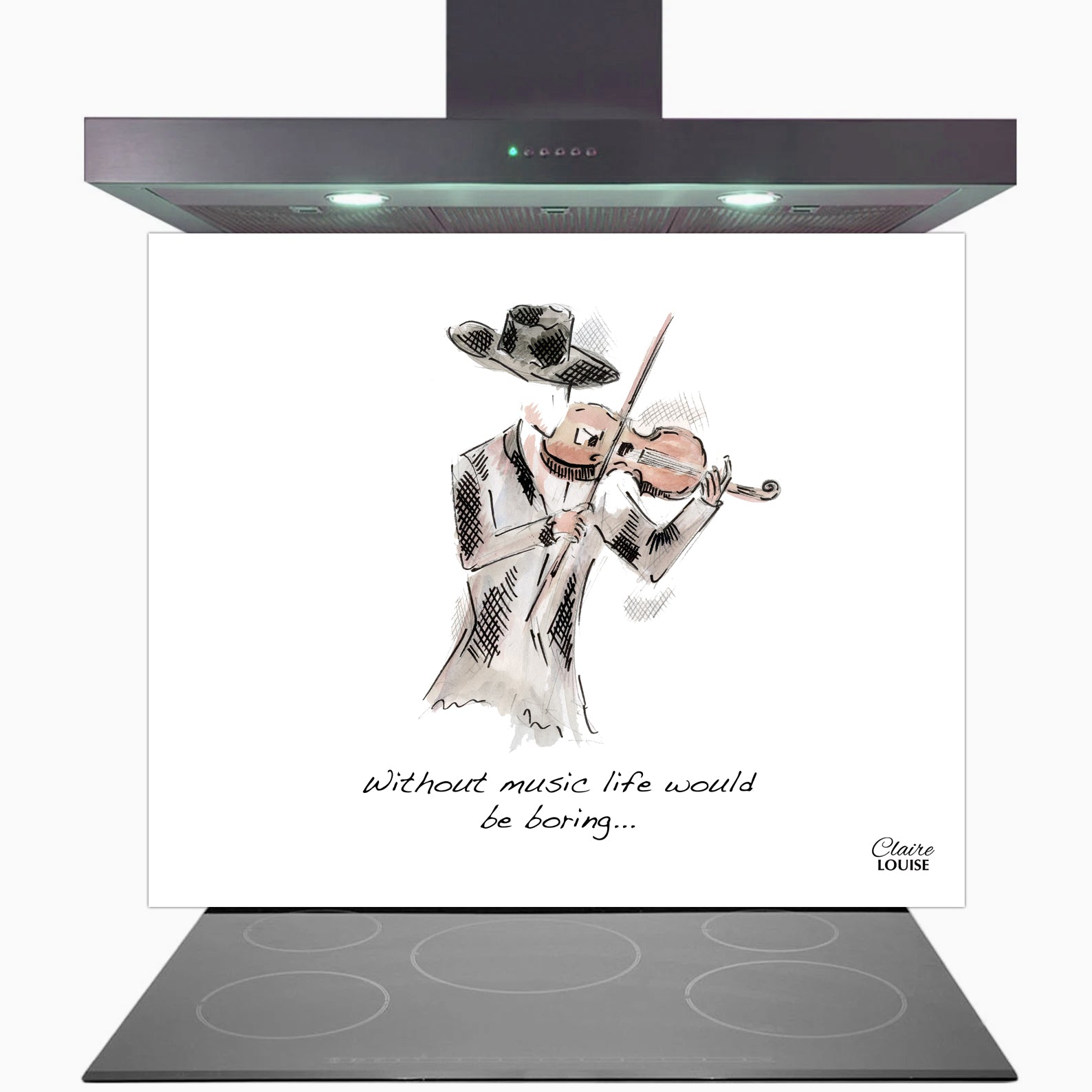 Without Music Life Would Be Boring Glass Kitchen Splashback