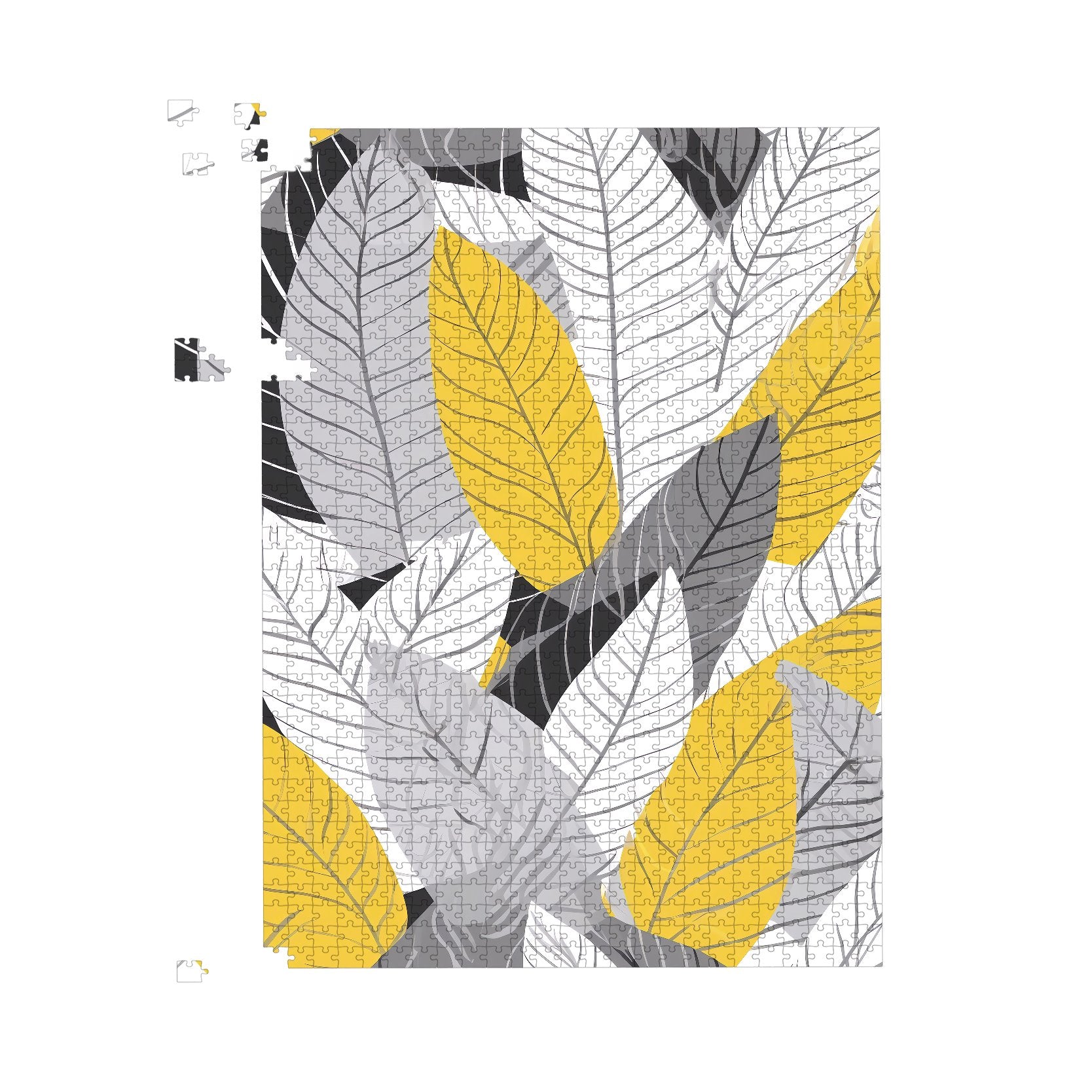 Yellow Grey Feather Leaves Jigsaw Puzzle