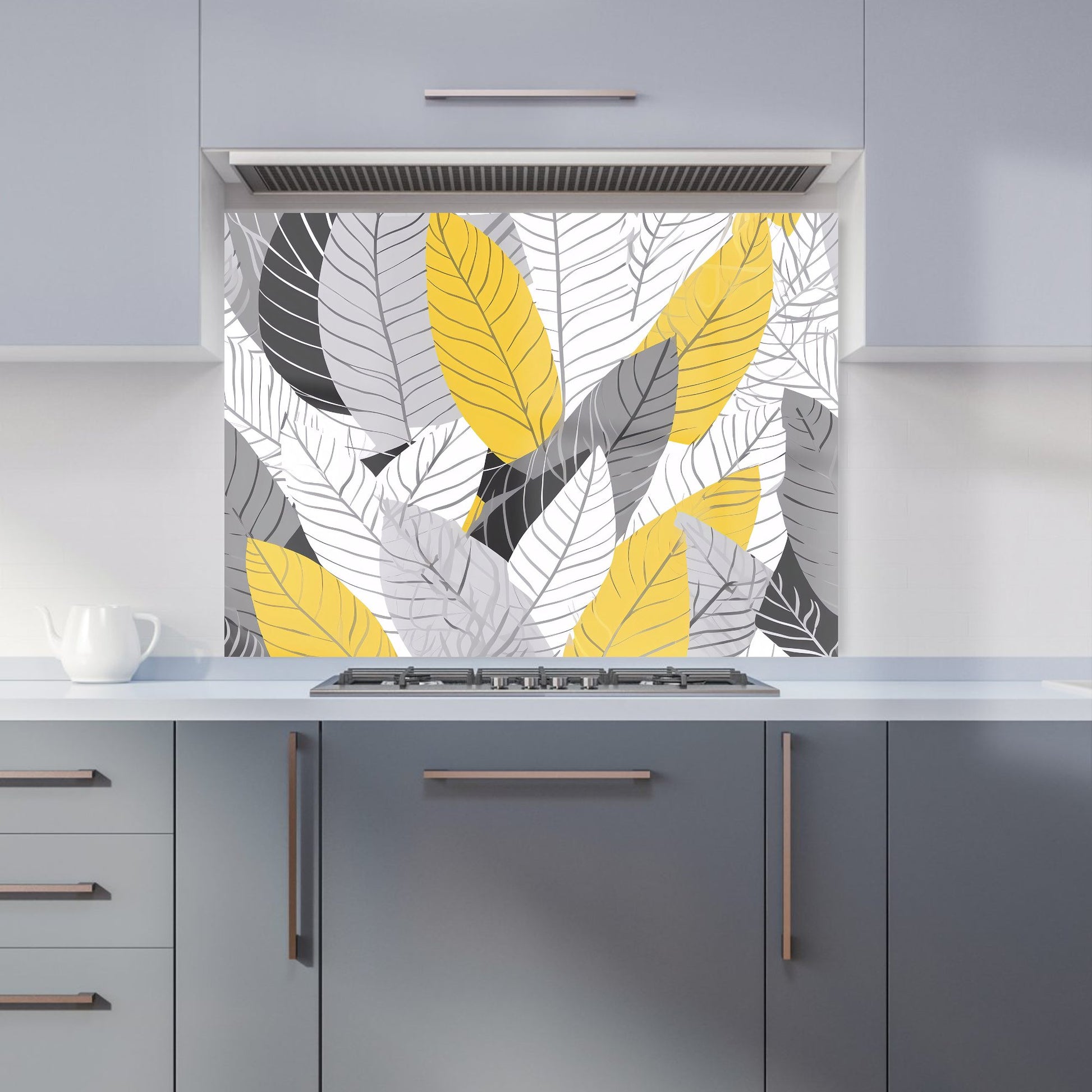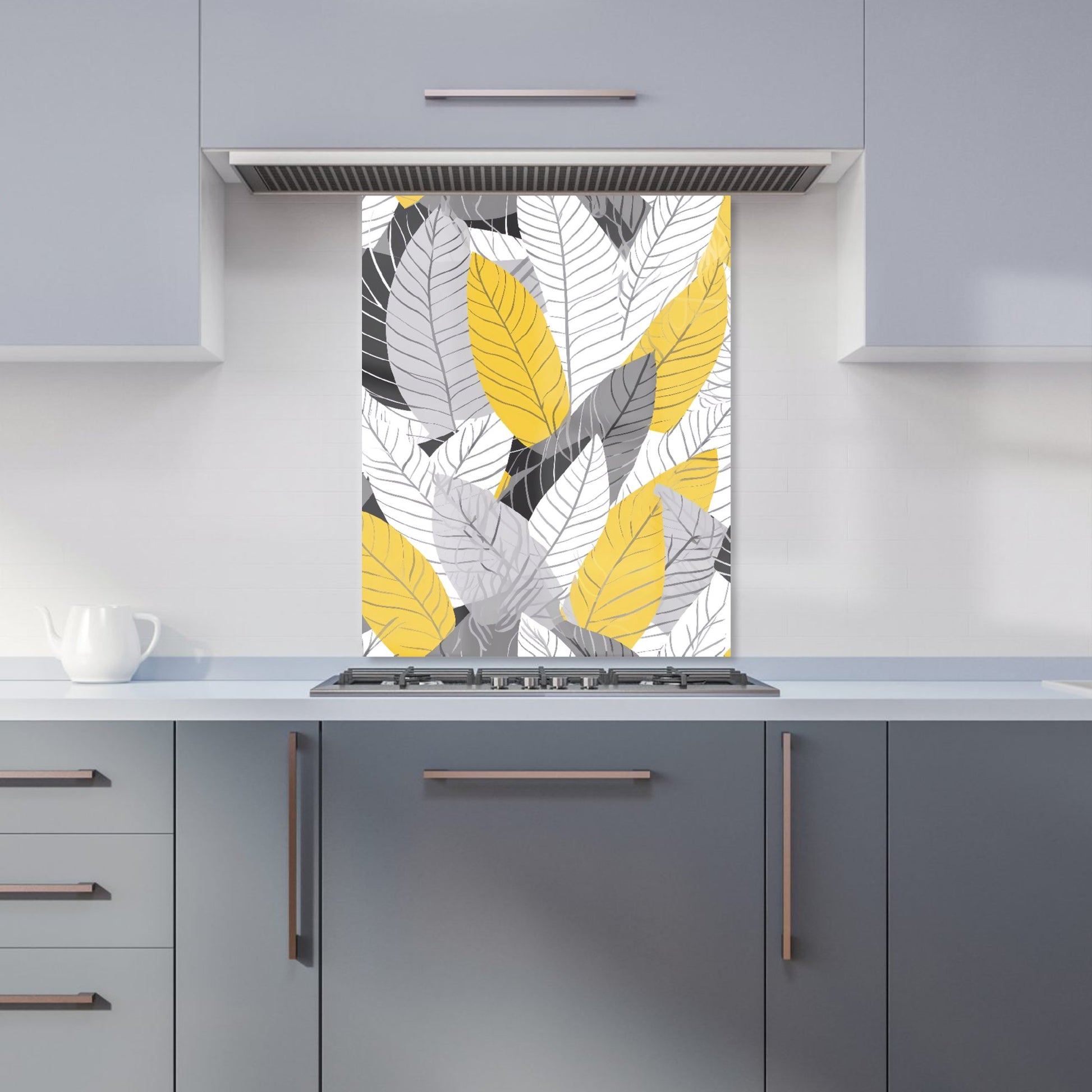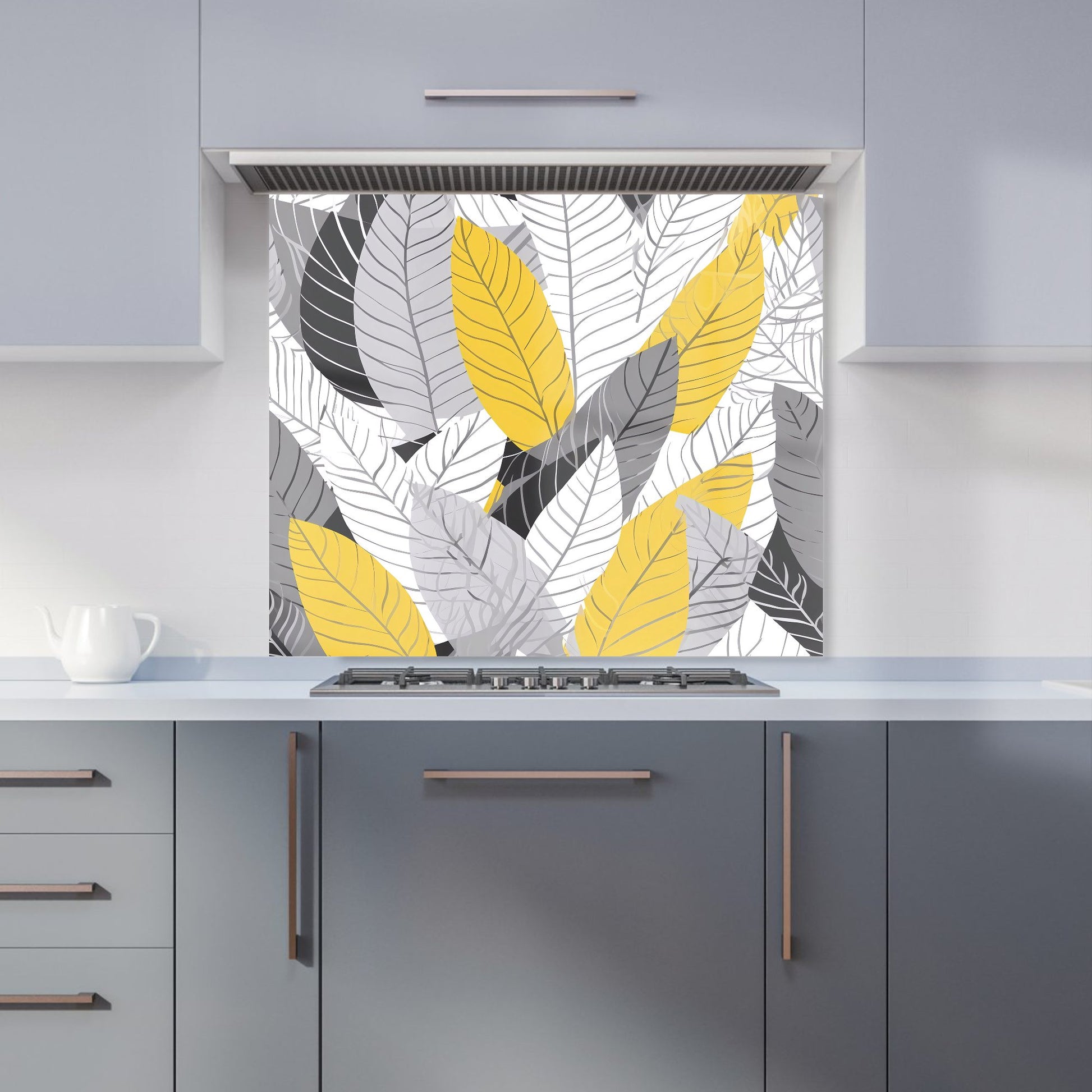 Yellow Grey Feather Leaves Kitchen Splashback