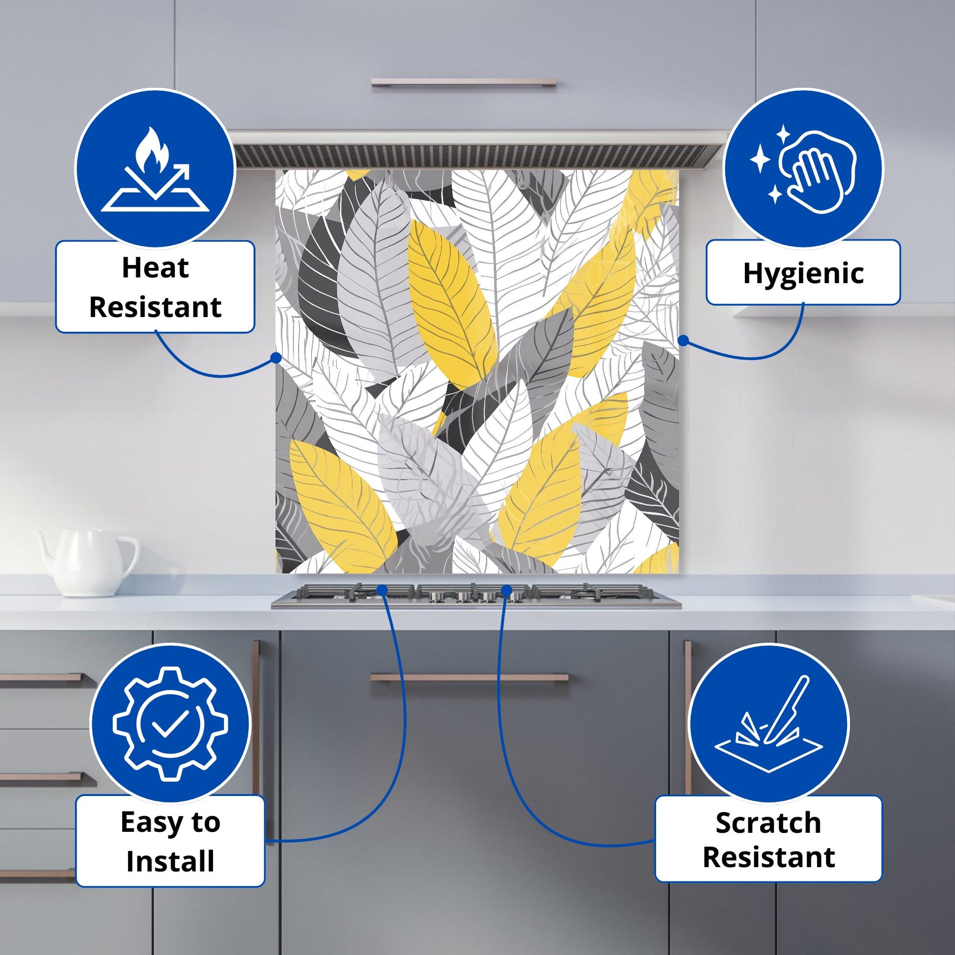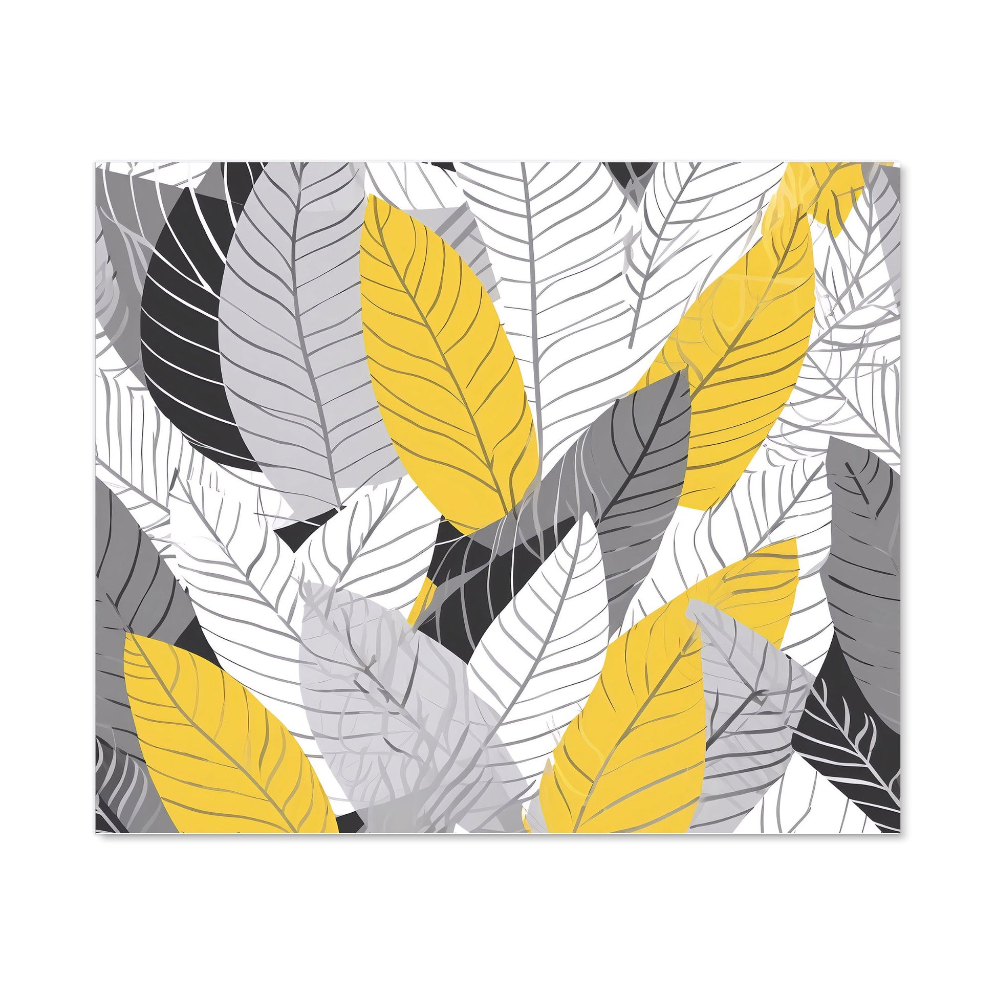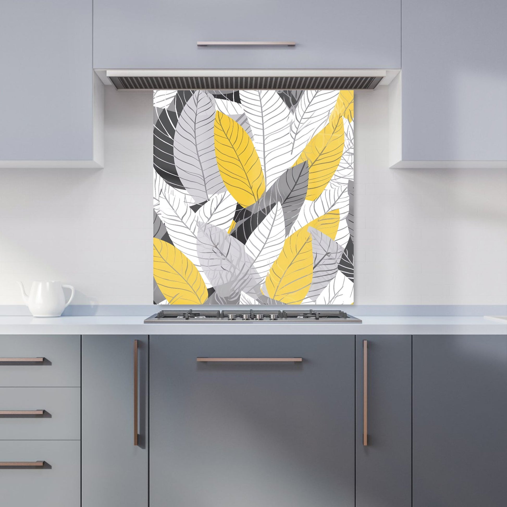 Yellow Grey Feather Leaves Kitchen Splashback