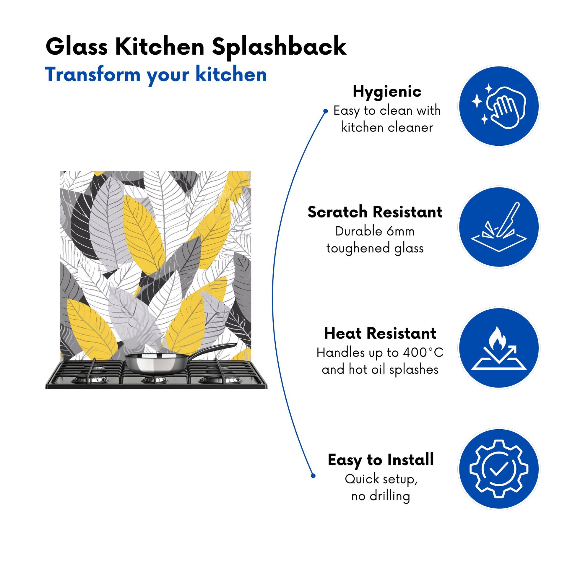 Durable and easy to clean, it's perfect for the kitchen. Whether renovating or updating your home’s look, our Premium 6mm Glass Kitchen Splashback is a stylish choice that makes a lasting impression. Upgrade your kitchen décor today for the perfect mix of beauty and practicality.